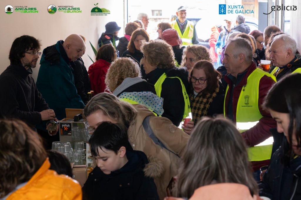 A peregrinaxe, ademais dunha importante parte cultural, lúdica e deportiva, tamén a tivo gastronómica, xa que os asistentes puideron desfrutar dunha degustación de produtos da ‘Cociña de Ancares Terras de Burón’ para recuperar forzas logo da andaina.