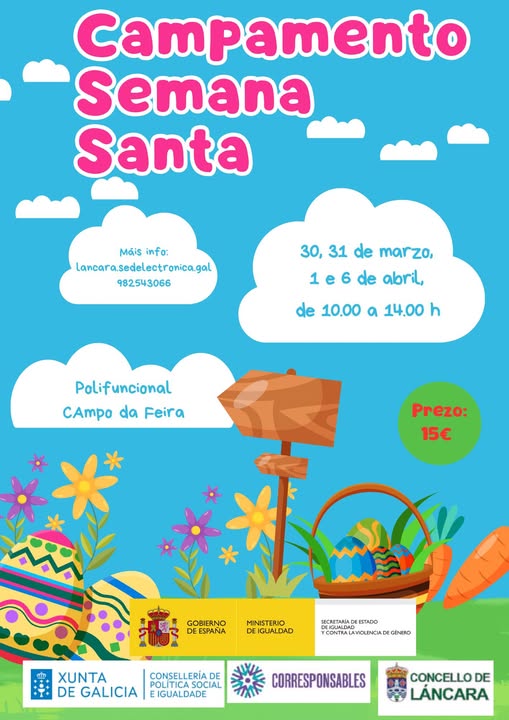 📅 30, 31 de marzo e 1 e 6 de abril de 10:00 a 14:00