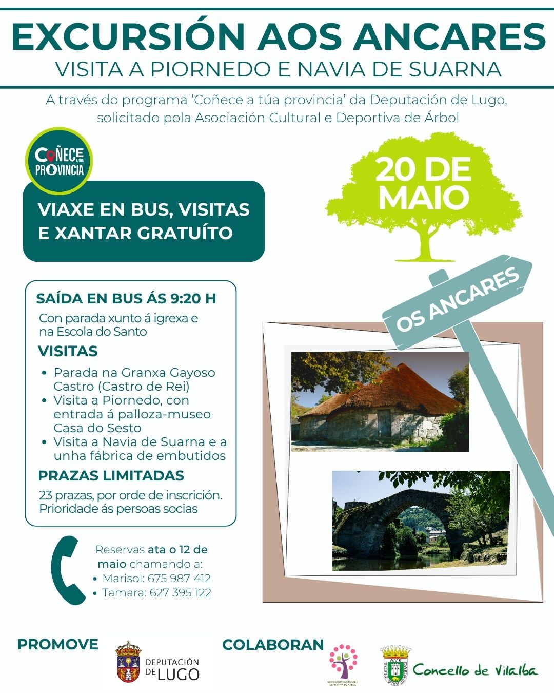 🚌 A través do programa “Coñece a túa provincia” da Deputación de Lugo a Asociación Cultural e Deportiva de Árbol de Vilalba organiza esta excursión.