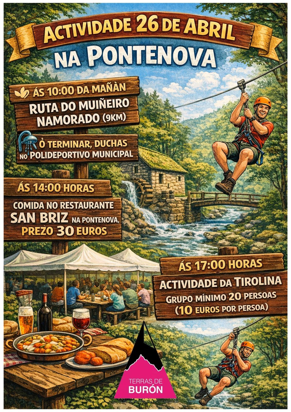 • 14:00 – Comida no Restaurante San Briz (A Pontenova). Prezo: 30€ por persoa.