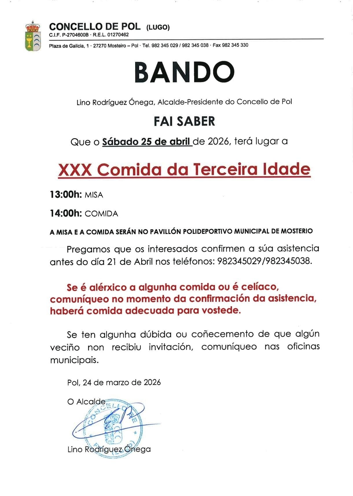 ✍️ Inscrición antes do 21 de abril. Chamar ao 982 345 029 ou ao 982 345 038